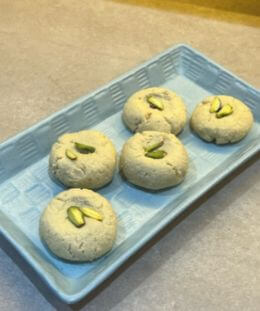Gud Sandesh is a traditional Bengali sweet prepared with fresh paneer (chhena) and sweetened naturally with jaggery (gud) instead of sugar. This wholesome dessert not only satisfies your sweet cravings but also adds the rich, earthy taste of jaggery, making it a healthier festive indulgence. Soft, melt-in-the-mouth, and delicately flavored, Gud Sandesh is often shaped into small rounds or decorated with dry fruits for an elegant touch. Rich in calcium and iron, this sweet treat is both nutritious and delicious, making it a wonderful choice for festivals, pujas, or as a guilt-free everyday dessert.